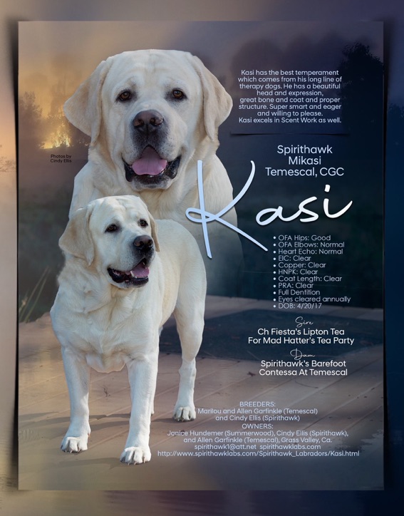 Kasi lives and is loved by Jan Hundemer, co-owned with Spirithawk and Temescal Labradors