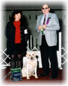CH. Skycrest Sir Bogart, WC x Ganderhill Tatezi Spirithawk, CDX, NA, CGC, TD’i, WC, two legs toward her Jr Hunt title