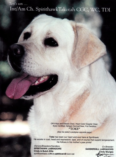 Int. Am. Ch. Belle's Moonriver X Int. Am. Ch. Spirithawk's Summer Sun TDI, CGC
